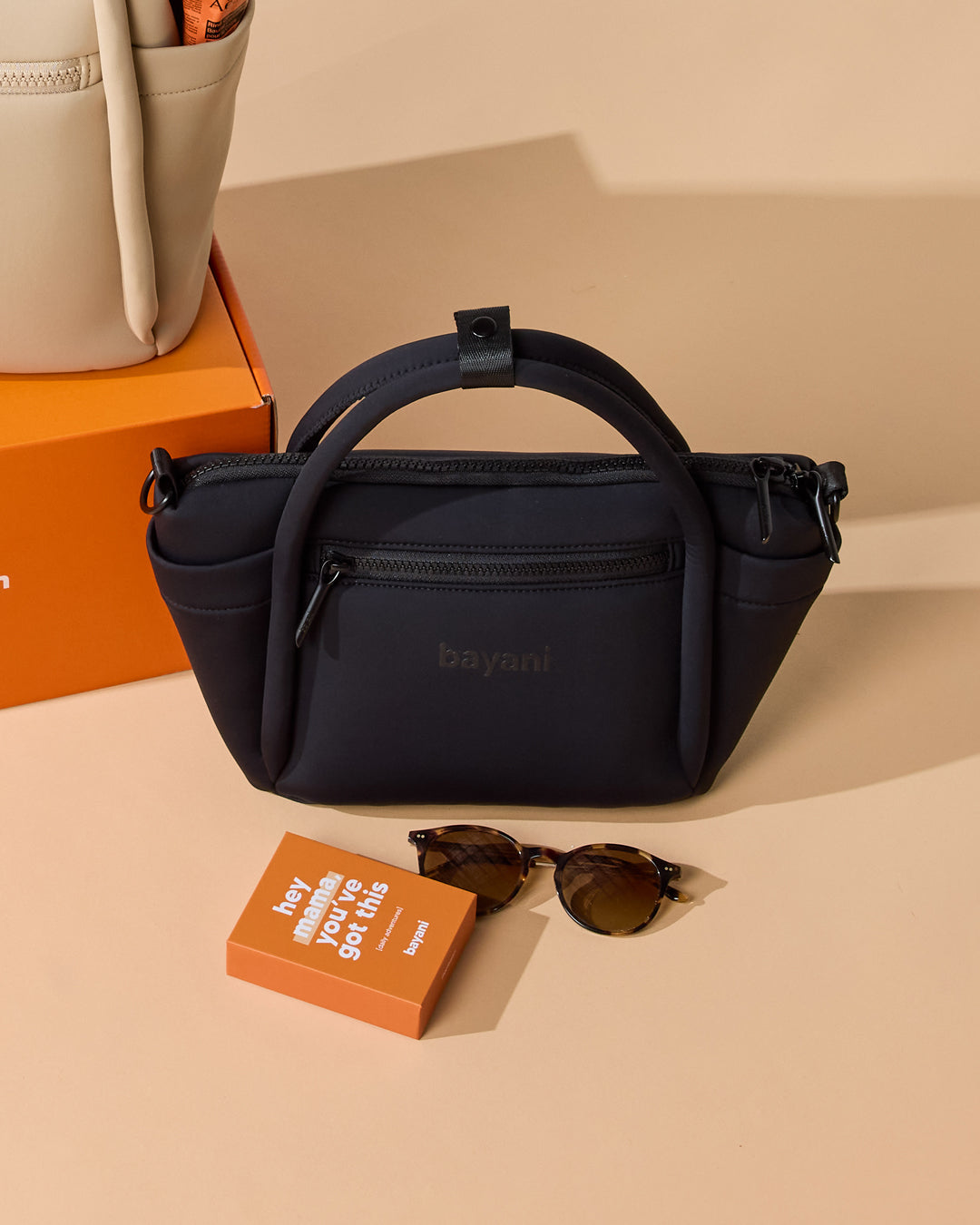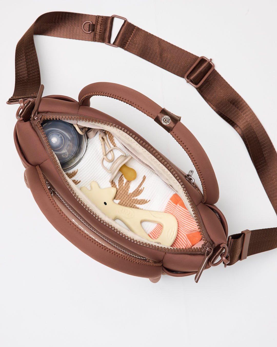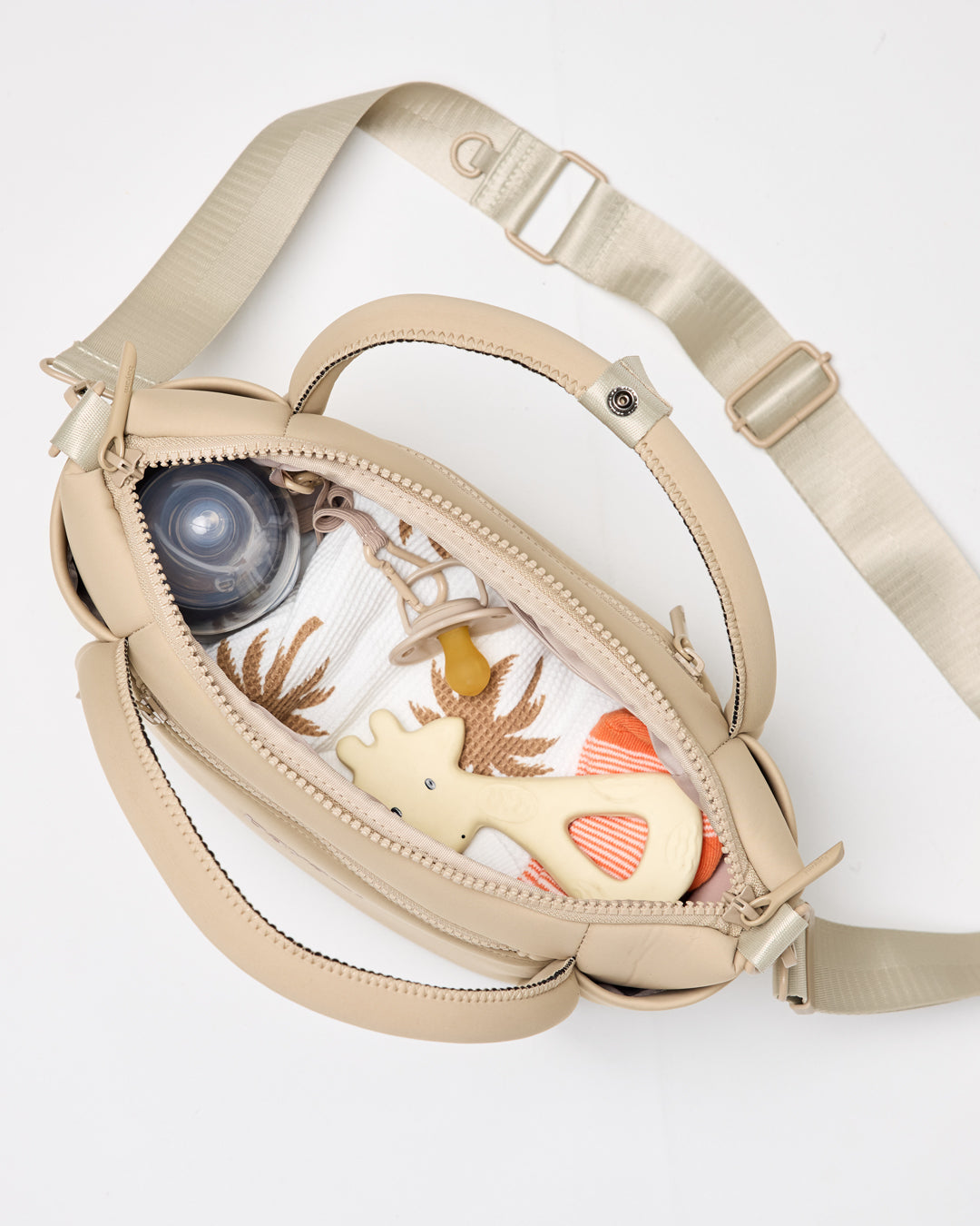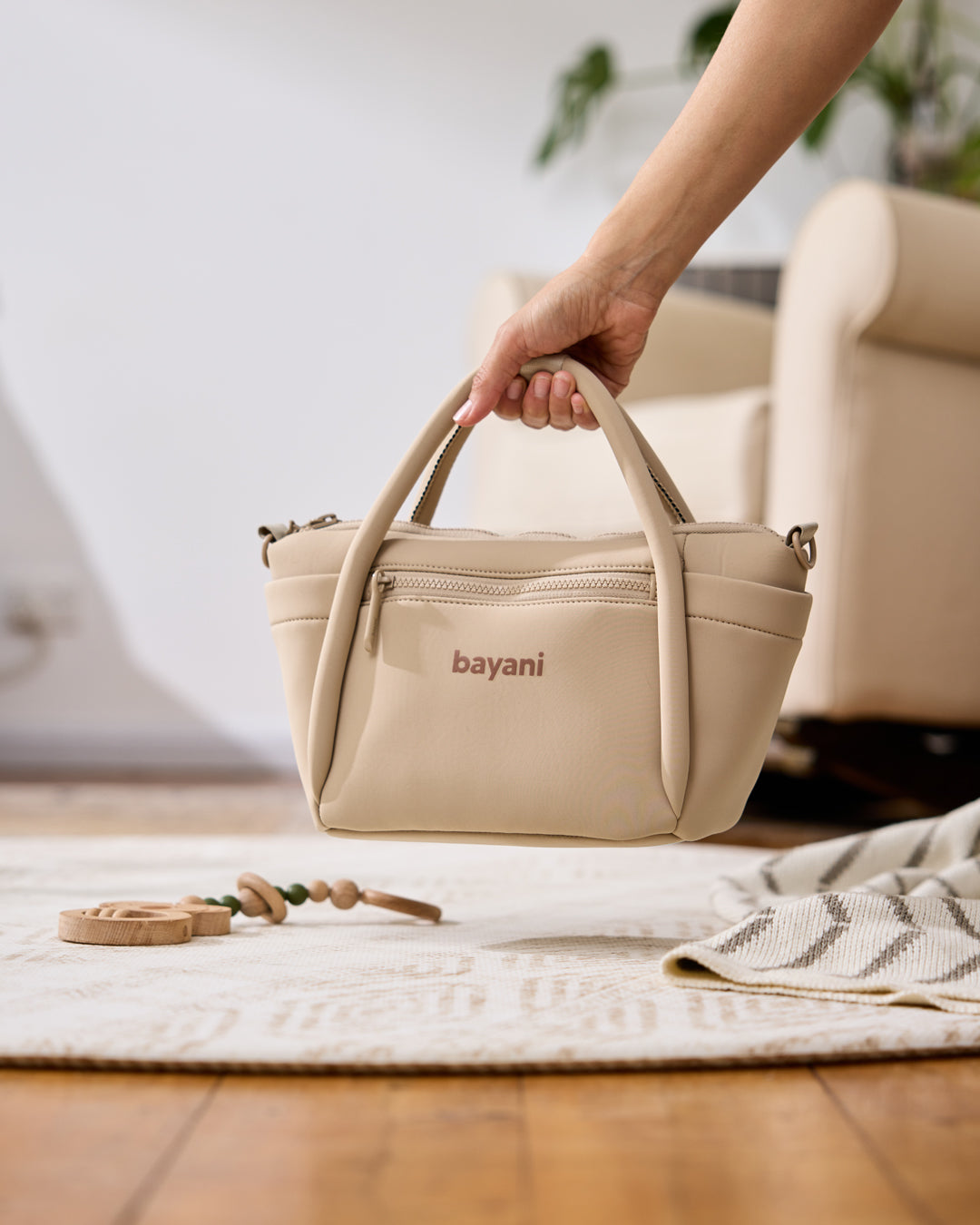 one bag, two ways - the bayani pram caddy transforms from stroller organizer to crossbody bag so you can keep hands-free, organized, and on the go.